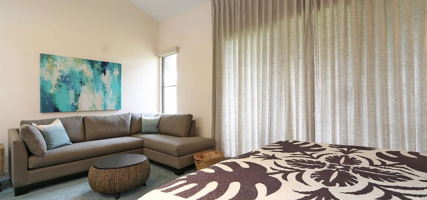 Escape to paradise with stunning ocean and green belt views from the lanai of this 2nd floor studio. 8F is a fully-furnished studio featuring cathedral ceilings, a comfortable living area, a California King bed, and a fully-equipped kitchen. The layout and decor of the unit provide a contemporary look with touches of Aloha. 8F is the perfect spot for those seeking a beachfront getaway with all the comforts of home! The Ekahi main pool, the Ekahi pavilion, and the beach are less than a minute from the door (level walk). LG Washer and Dryers available in unit, so you can pack less. Pack and Play available for guests travelling with young infants. Free WIFI and free calls within North America. Non-smoking condo unit....