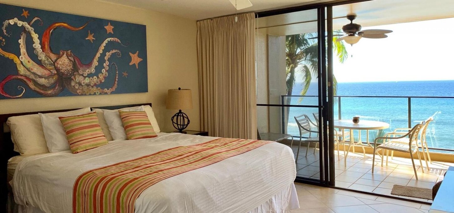 Mahana 507 is an oceanfront and beachfront condo right on top of the Pacific Ocean! The pictures here tell the story. This condo is located on Kaanapali Beach. We are on the 5th floor (Unit 507), which we consider the perfect height for watching whales and experiencing the stunning sunsets. The unit was recently remodeled with a fully stocked kitchen so you can cook a gourmet meal.The floor-to-ceiling and wall-to-wall window in the living room brings you so close to the ocean,almost like being on a cruise ship. You can truly enjoy the views from the comfort of your living room or from the lanai while enjoying the island breeze.Our condo offers: * More square footage than many other resorts * All Tiled flooring * Remodeled for your enjo...